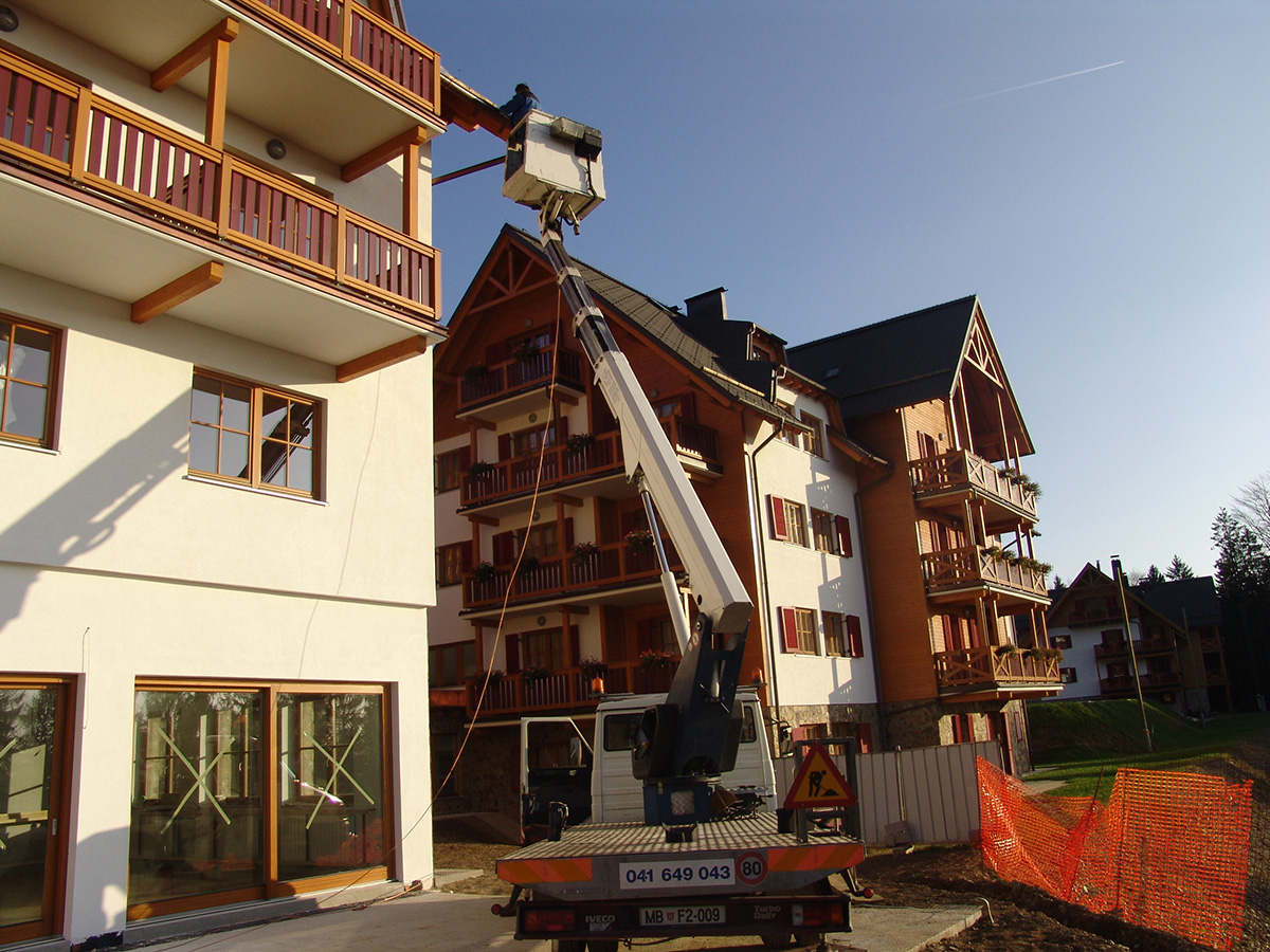 - Montažna dela - Barvanje fasad in napuščev - Montaža kleparskih in steklarskih izdelkov - Obrezovanje ali podiranje drevja